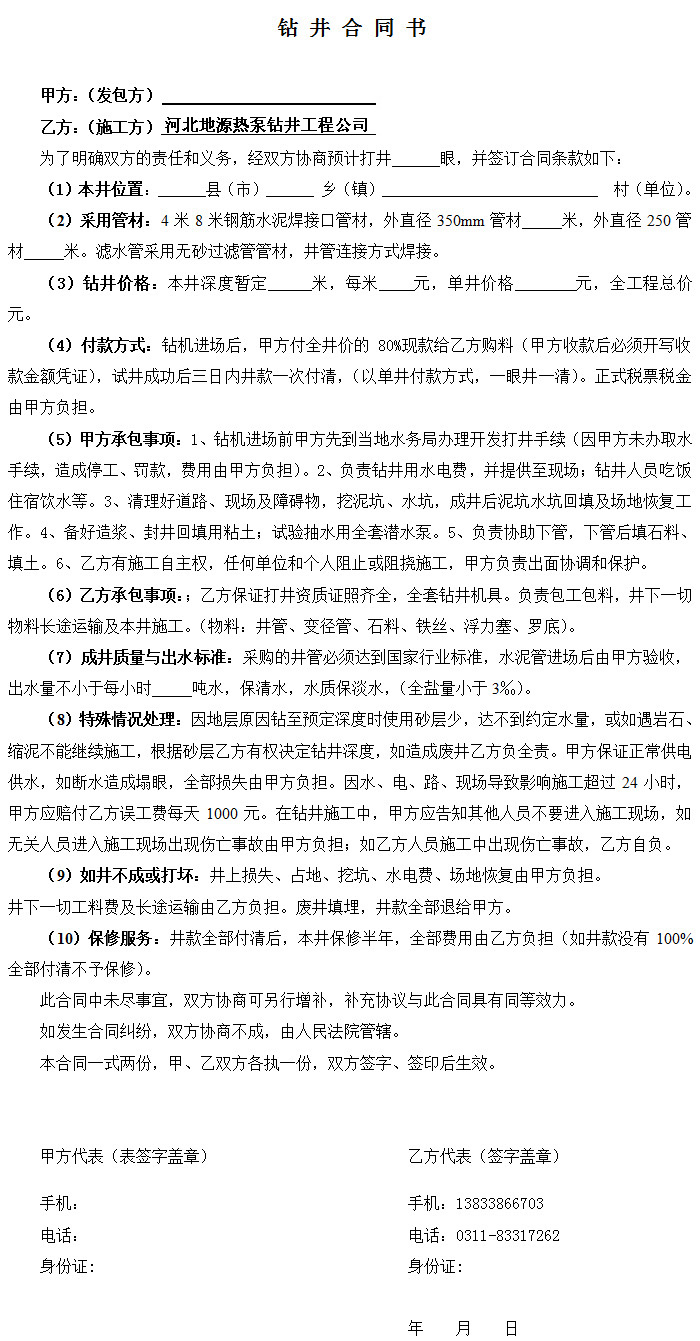 钻井合同书 2
